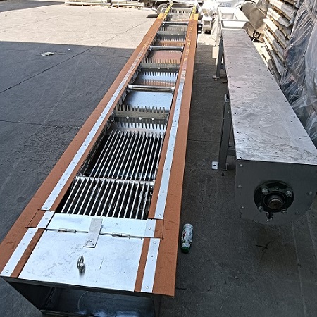 另一部分則依靠清掃器的反向運動把粘在耙齒上的雜物清掃干凈。按水流方向耙齒鏈類同于格柵,在耙齒鏈軸上裝配的耙齒間除可以根據使用條件進行選擇。當耙齒把流體中的固態是浮物分離后可以保證水流暢通流過,整個工作過程是連續的,也可以是間歇的。